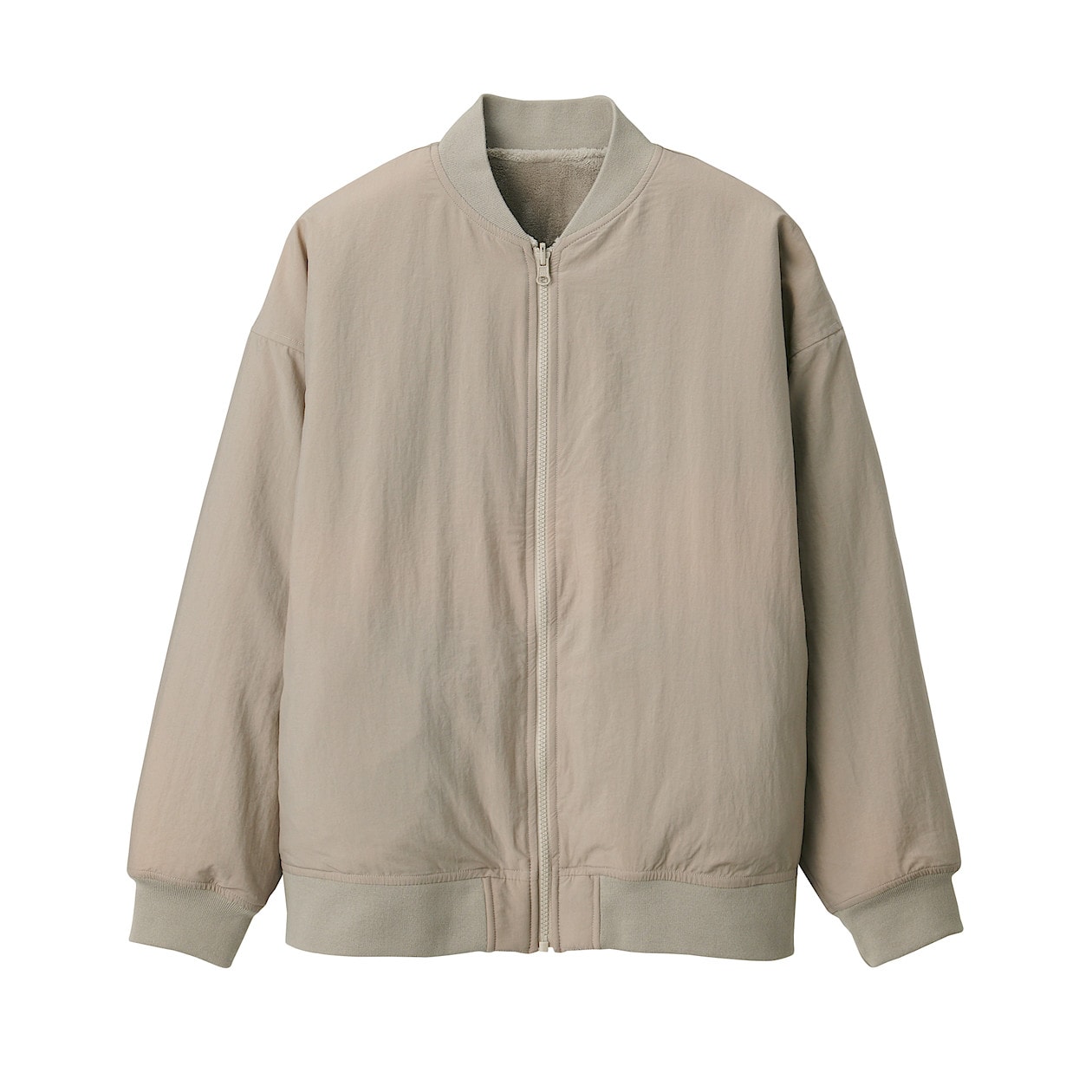 マイクロファイバー毛布の生地で軽く、あたたかなブルゾンを作りました。なめらかな肌触りも特長です。